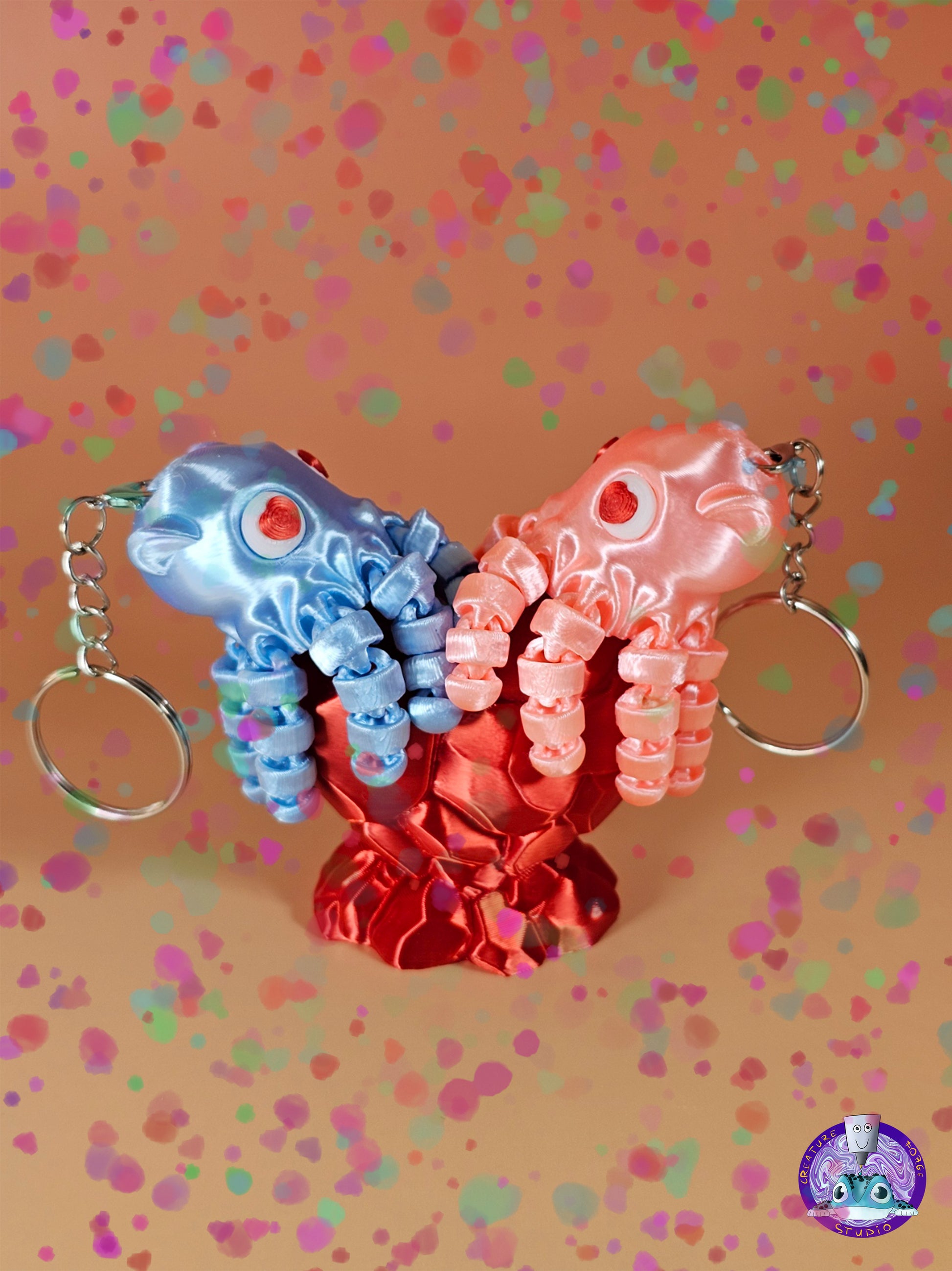 A stunning 3D printed flexible octopus keychains with a magnetic heartholder.